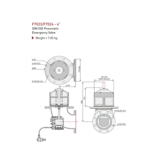 EMCO Wheaton F7023 Pneumatic 4″ 90 Degree TW Flanged Emergency Valve. EMCO Wheaton F7000 series of Emergency Valves are designed to incorporate maximum safety, high flow, low-pressure drop, easy maintenance and offer a long service life. The simplicity of their design makes them ideal for oil companies and transporters of petroleum products.